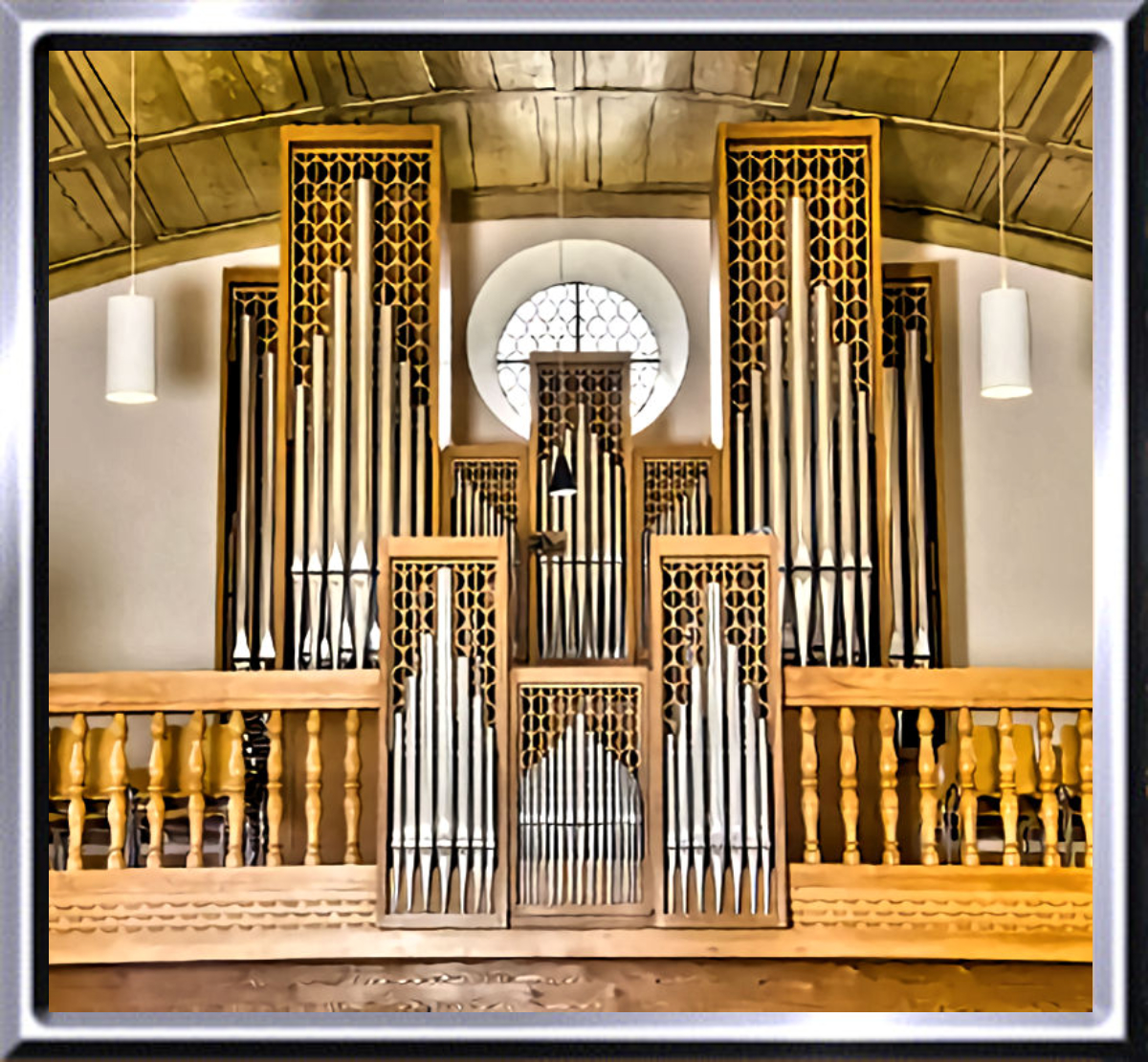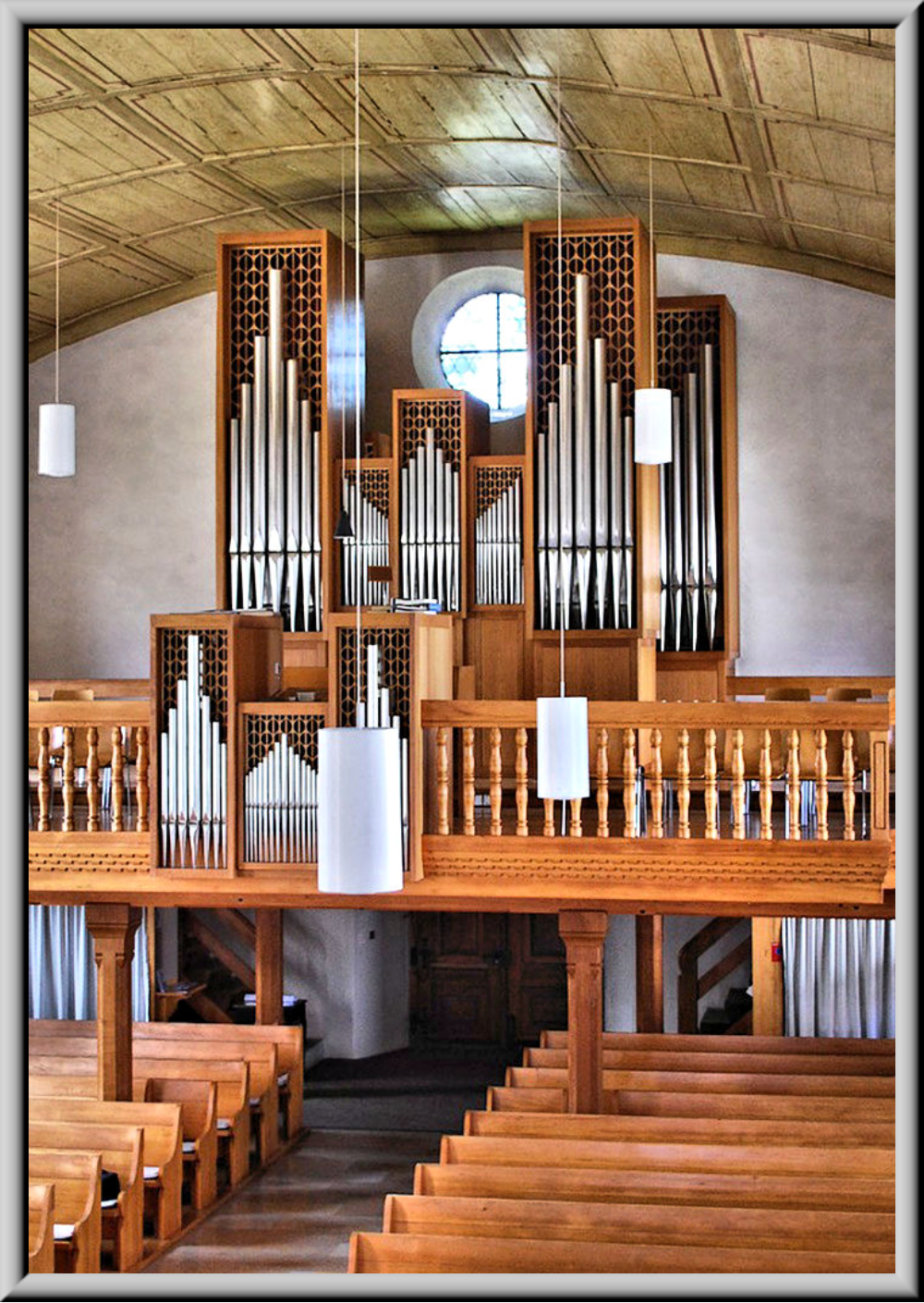 gistern auf 2 Manualen und Pedal (>Disposition). Da die Denkmalpflege