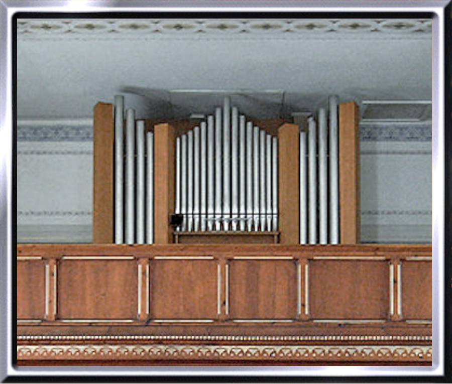 bau Kuhn AG, Männedorf, mit 14 Registern auf 2 Manualen und Pedal.