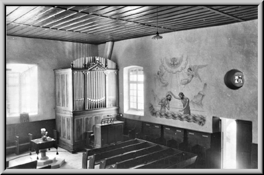 1813 Für die alte Kirche kauft die Gemeinde eine kleine Orgel zum Preis von 400 Franken. Der Kanton leistet dazu einen Beitrag von 100 Franken. 1823 Bau einer neuen Kirche. 1873 Die Orgelbauer Weber und Sohn aus Bern liefern ein Positiv mit 4 Registern (Principal 8’, Bourdon 8’, Oktav 4’, Flöte 4’). 1925 Die Firma Goll, Luzern, erstellt ein pneumatisches Instrument mit 9 Registern und 3 Transmissionen auf 2 Manualen und Pedal (Opus 581, >Disposition). Das Pfeifenwerk der Weber-Orgel wird weiterverwendet. 1945 Revision durch Ernst Wälti, Bern. 1976 Orgelbau Friedrich Weigle, Echterdingen (D), baut eine neue Orgel mit 15 Registern auf 2 Manualen und Pedal (>Disposition). 2000 Revision durch Orgelbau Kuhn AG, Männedorf.