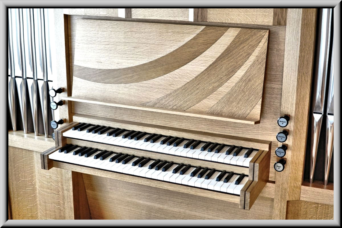 NW, eine Hausorgel mit 8 Registern auf 2 Manualen und Pedal.