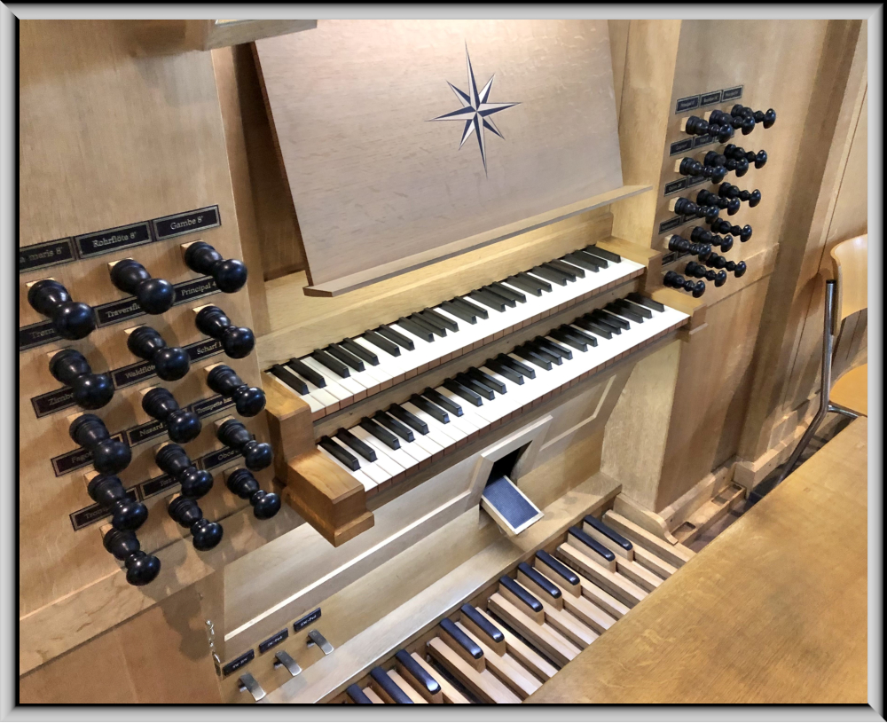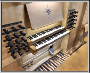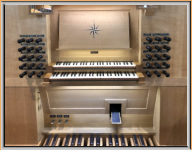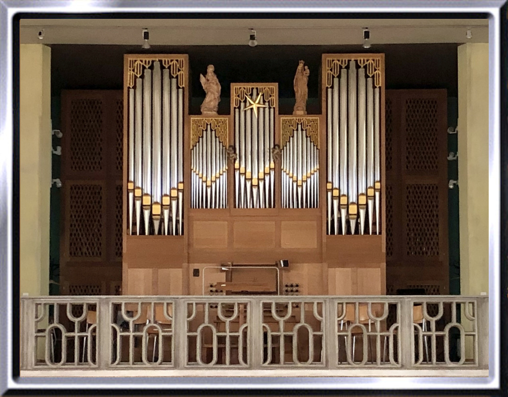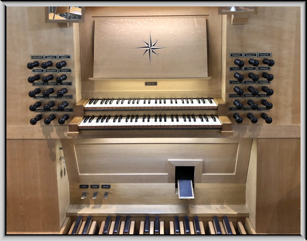 Registern auf 2 Manualen und Pedal. Der Zimbelstern wird aus der