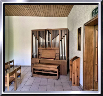 Kapelle genutzten Raum eine Truhenorgel mit 5 Registern ohne Pedal
