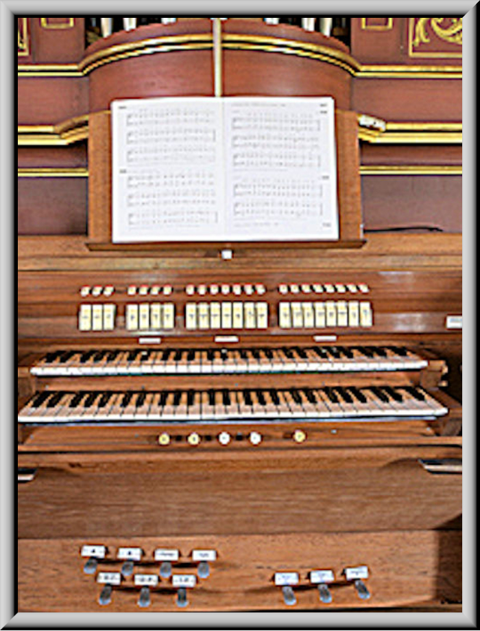 Orgel mit 19 Registern auf 2 Manualen und Pedal (>Disposition).