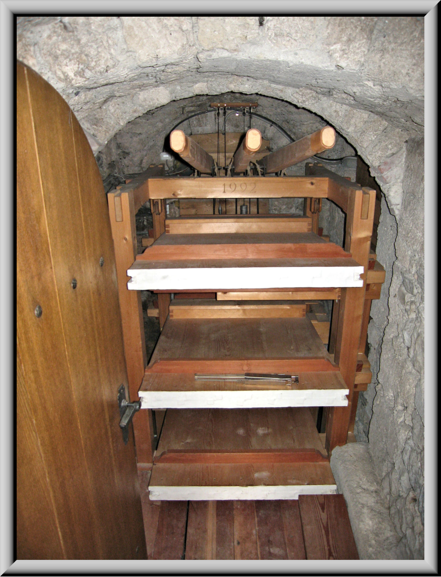 richtet der Orgelbauer in der nahen Turmkammer eine dreifache Keilbalg-