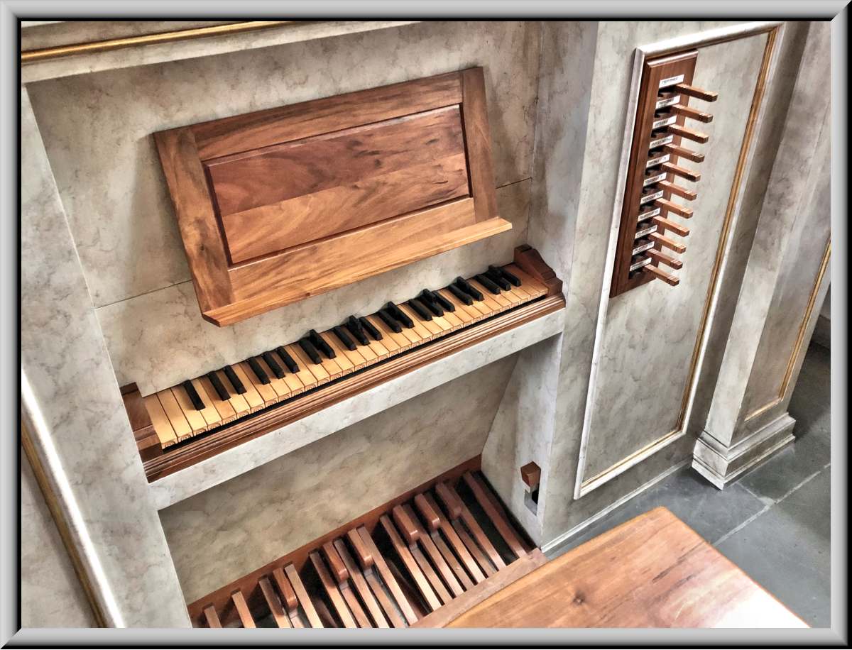 Springladenorgel nach lombardischer Art (Antegnati) konstruiert und hat