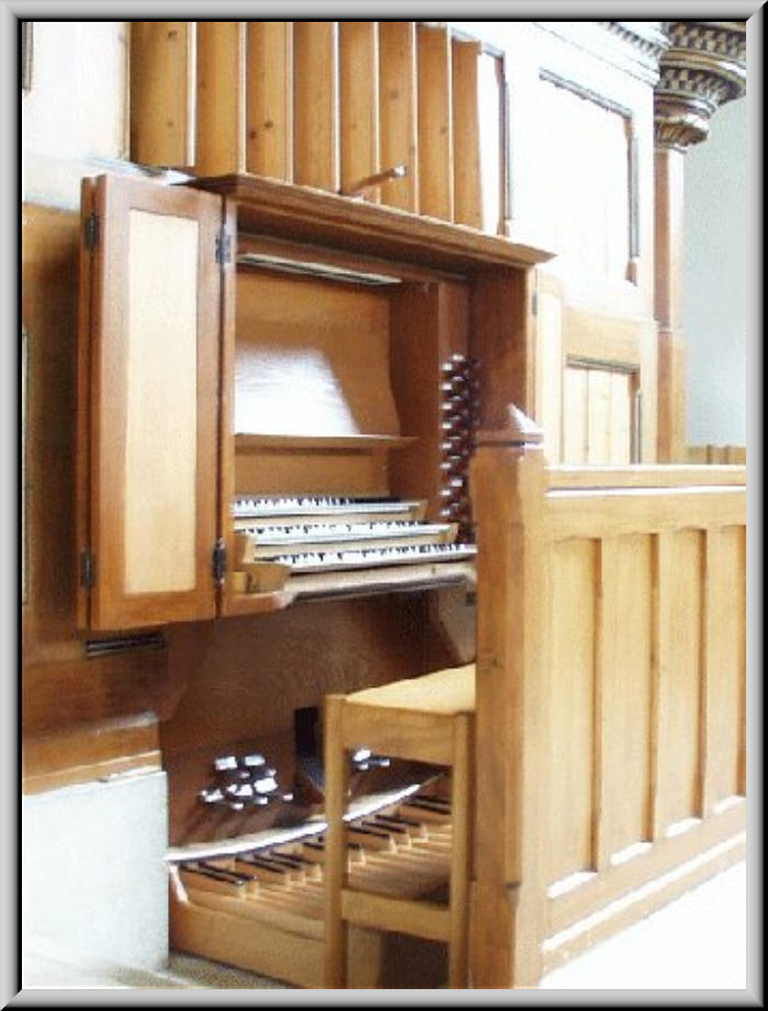 und Pedal. Über dem Spieltisch befindet sich das Brustwerk, dessen