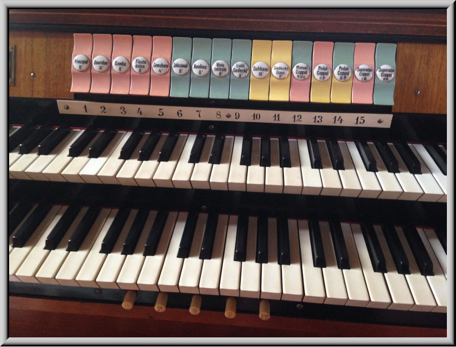 ein 4'-Register und keine "Aufheller" (Mixturen, Aliquoten). Das Instrument