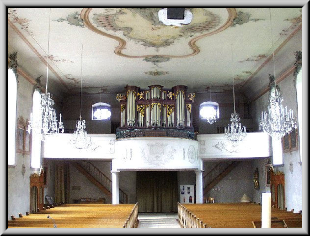 Orgel mit 20 Registern auf 2 Manualen und Pedal. Von der