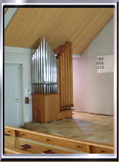 auf 2 Manualen und Pedal. Die Orgel ist um die Ecke herumgebaut, wo