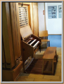 sich auch der Spieltisch befindet. Obwohl die Orgel und der Spieltisch