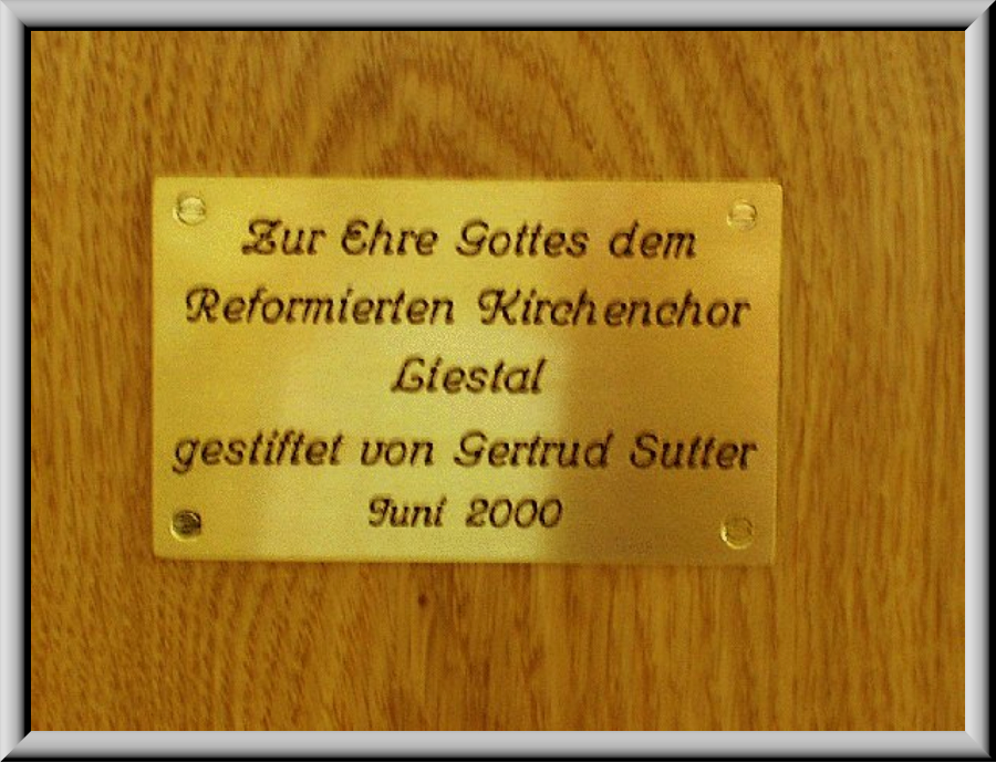 wurde dem Kirchenchor der Stadtkirche Liestal gestiftet, wie eine am