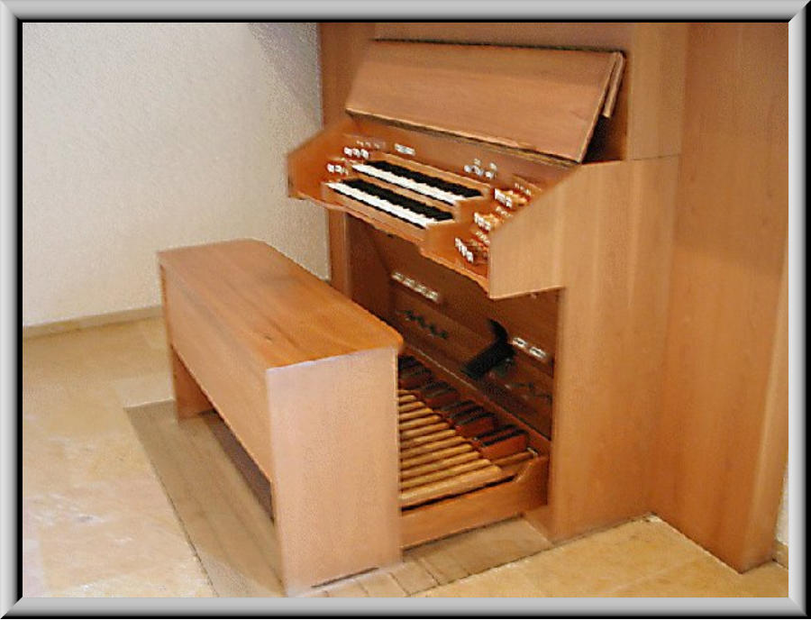 16 Registern auf 2 Manualen und Pedal.