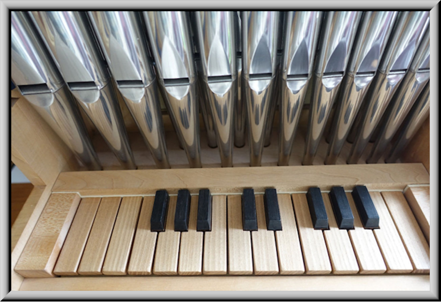 Die offenen Metallpfeifen auf 4'-Basis haben verschiebbare Stimmringe