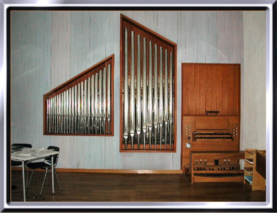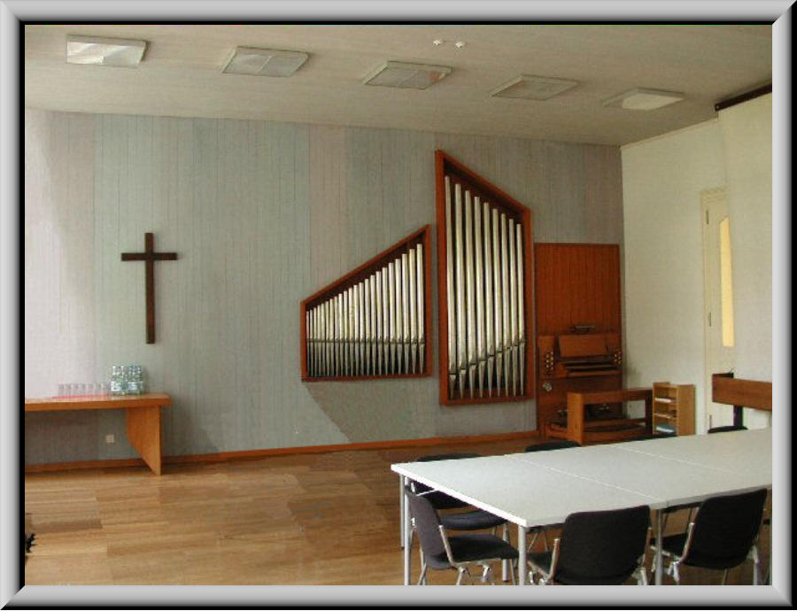 Die Orgel steht in rückwärtigen Orgelkammern die vom Nebenraum