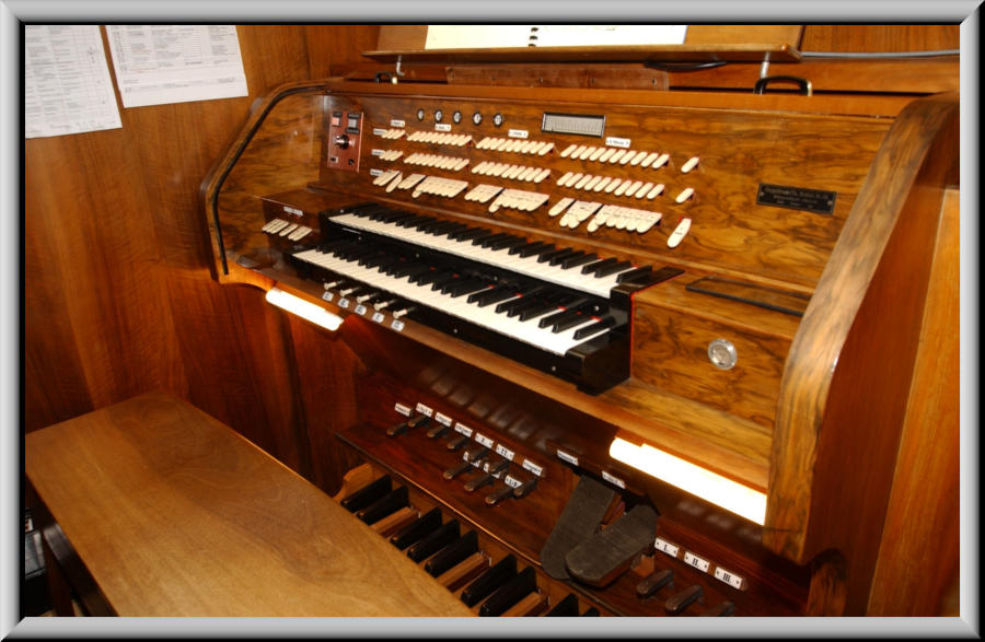 2 Manualen und Pedal. Die Orgel mit offenem Prospekt und ohne