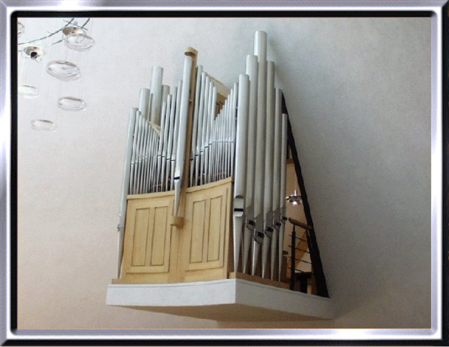 Höhe auf einer Konsole, ähnlich einer Schwalbennest-Orgel. Der