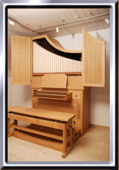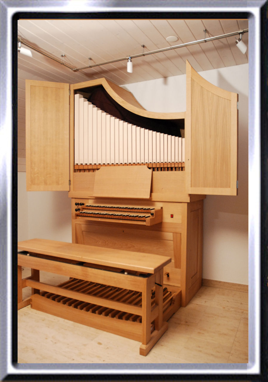 3 klingenden Registern auf 2 Manualen und Pedal. Ein Register kann auf