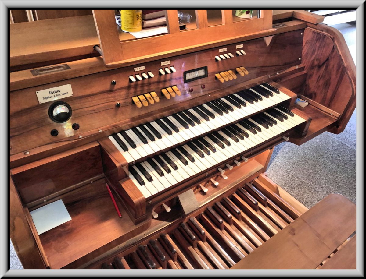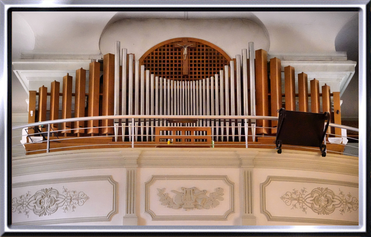 Sainteté, et de sa famille, qui sont originaires de la paroisse». L’orgue est