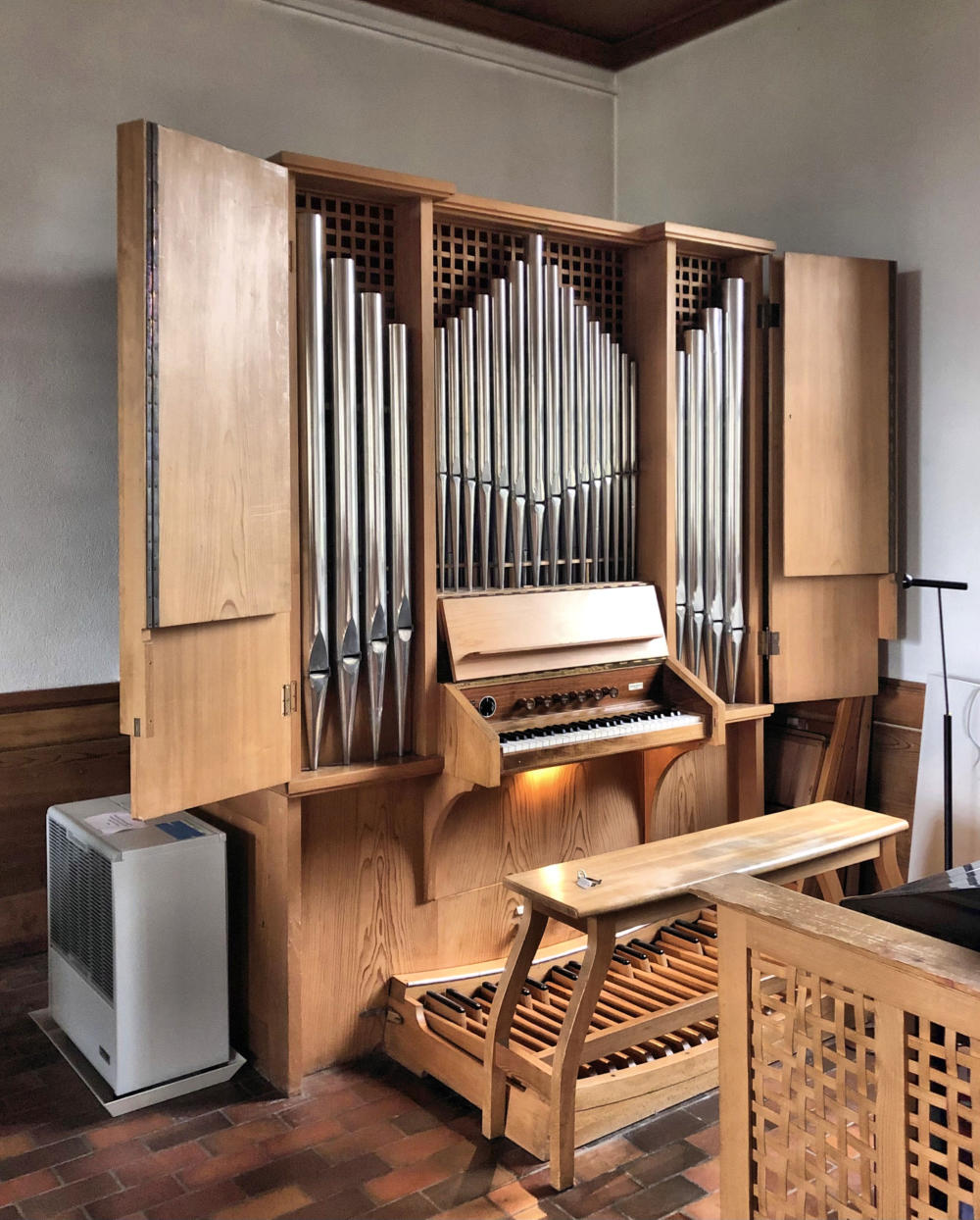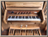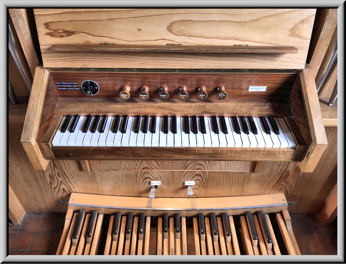 Registern auf einem Manual und Pedal das zuvor benützte Harmonium.