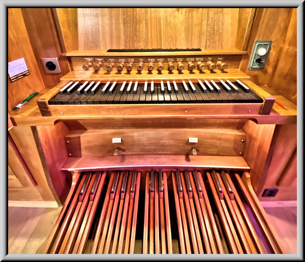 10 Registern auf einem Manual und Pedal. (>Disposition)