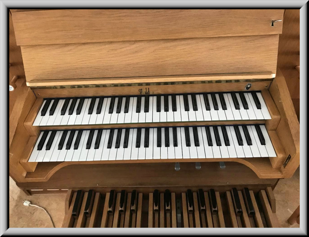 8 Registern auf 2 Manualen und Pedal (Opus 4723). Es handelt sich um
