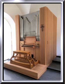 mit 10 klingenden Registern auf 2 Manualen und Pedal (Opus 496).