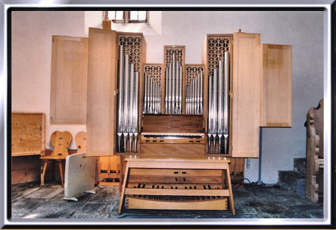 Dorfkirche als Begräbniskirche. Die Orgel ist auf der Südseite des Chors