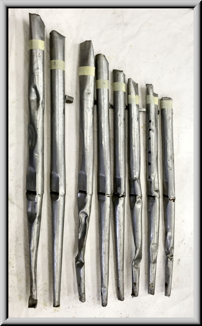 restaurierten Originalpfeifen, die sich teilweise in desolatem Zustand