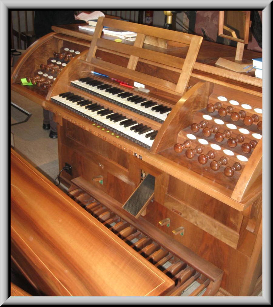 Registern auf 2 Manualen und Pedal. Das neue Instrument wird in das