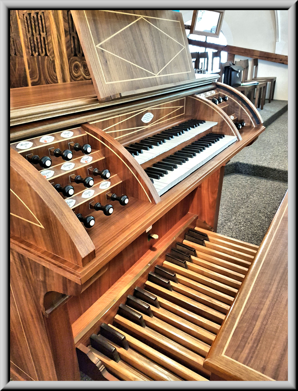 19 Registern auf 2 Manualen und Pedal im alten, erweiterten Gehäuse von