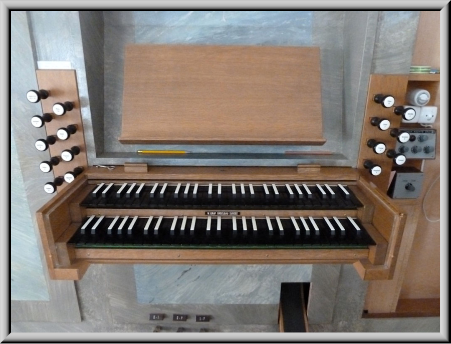 mit 13 Registern auf 2 Manualen und Pedal (Opus 190 >Disposition).