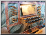 Manualen und Pedal im alten Gehäuse von Riegert, das seitlich erweitert