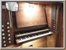 15 klingenden Registern auf 2 Manualen und Pedal.