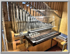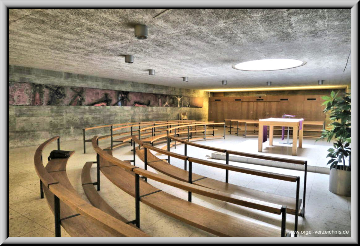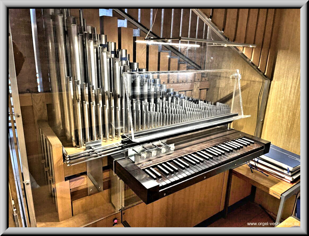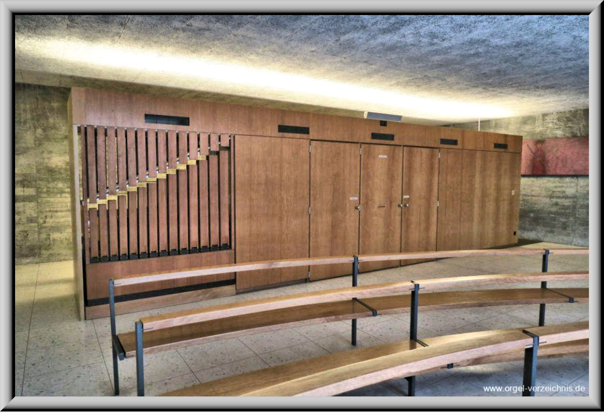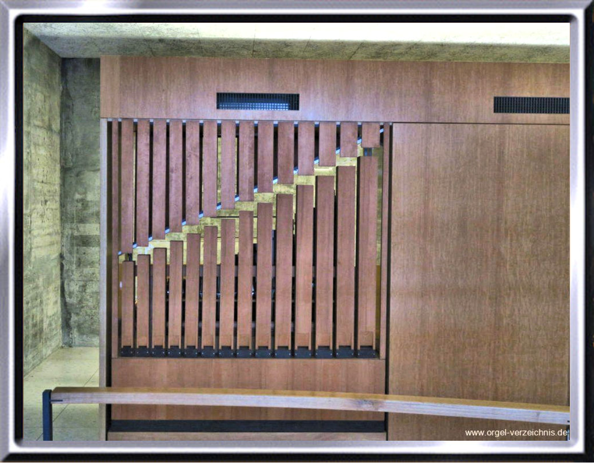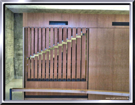 freistehende Orgel in den Raumteiler eingebaut. Der Spieltisch befindet