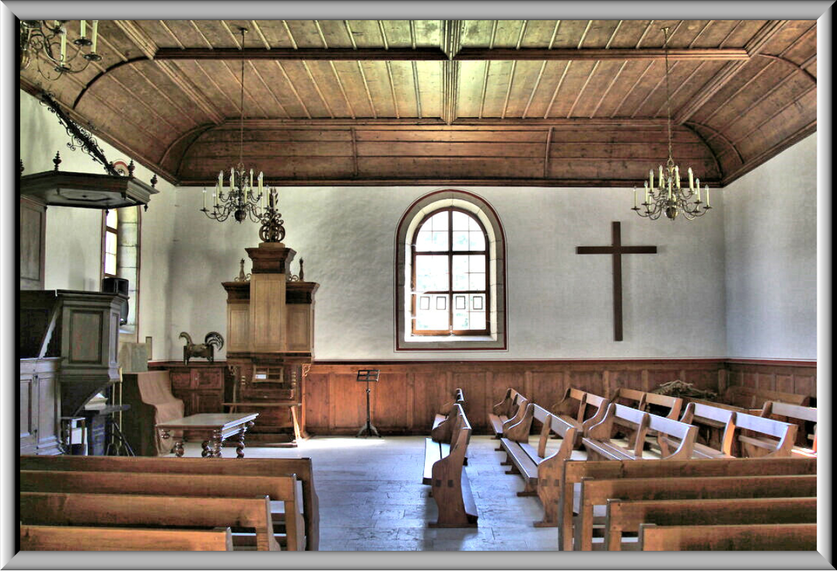 Dans le temple édifié en 1702, un harmonium Schiedmayer, Stuttgart,