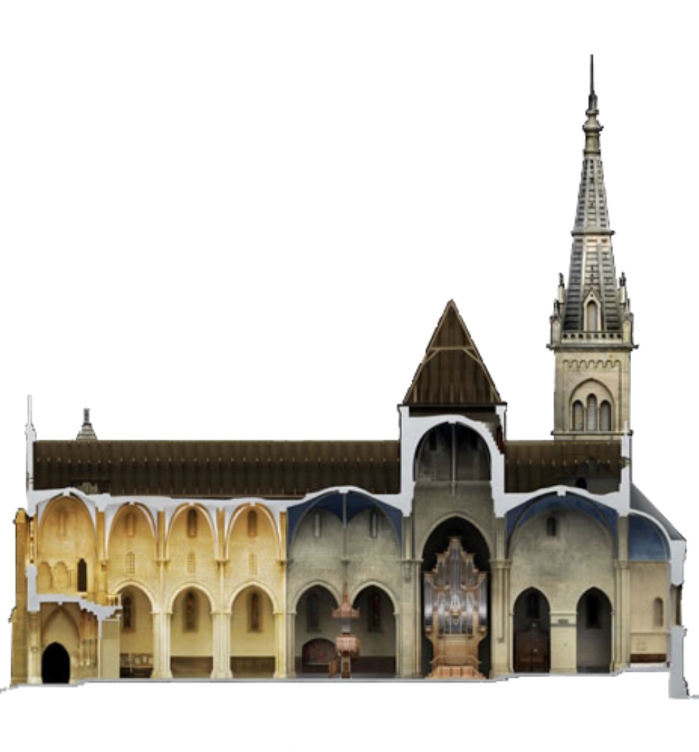 Coupe du bâtiment, avec la permission de “Conservation et restauration de la Collégiale”, Neuchâtel, 2009