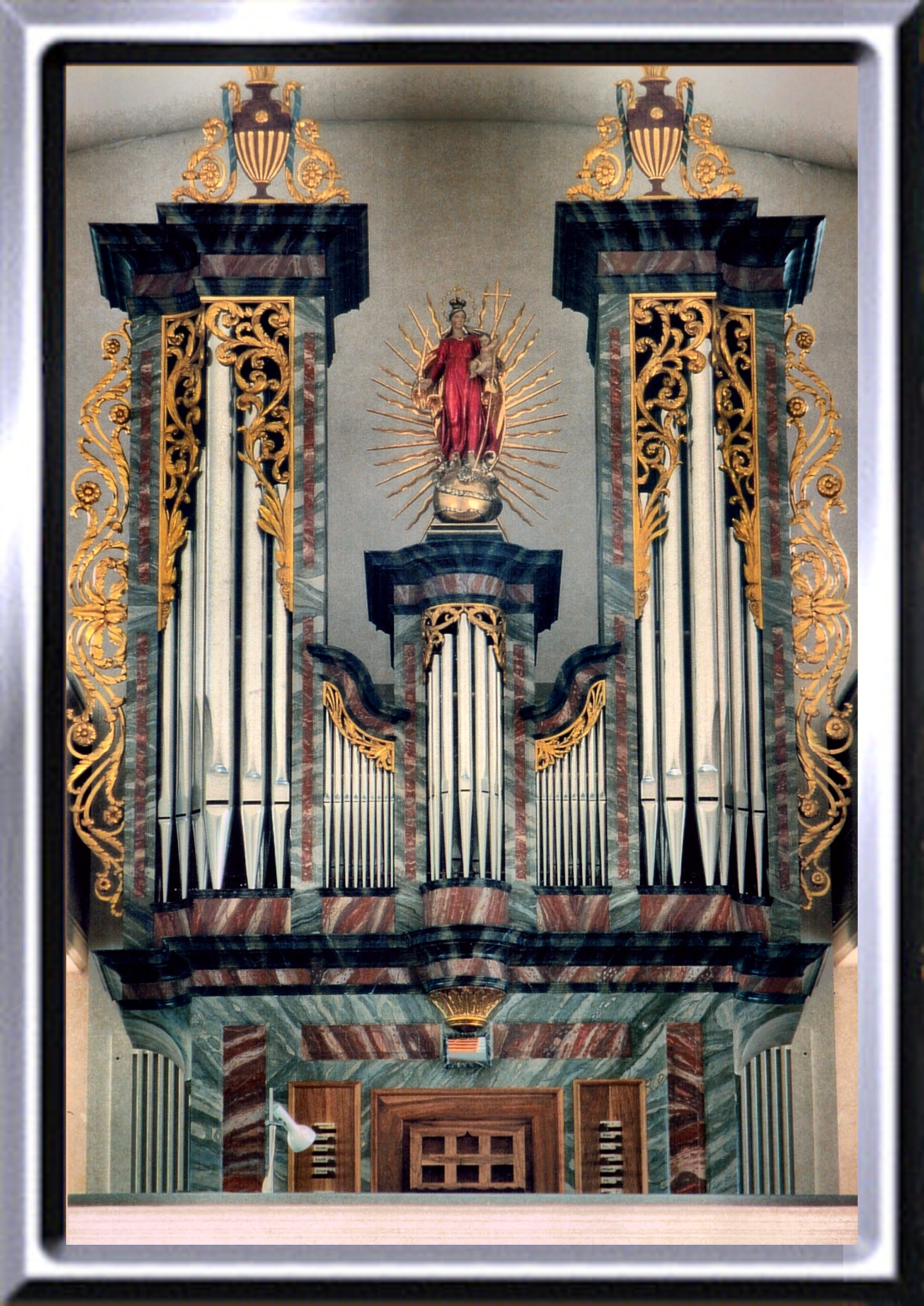 2 Manualen und Pedal (Opus 231, >Disposition). Die Gehäuse-Ornamente