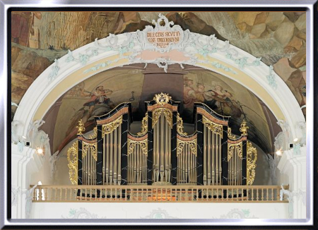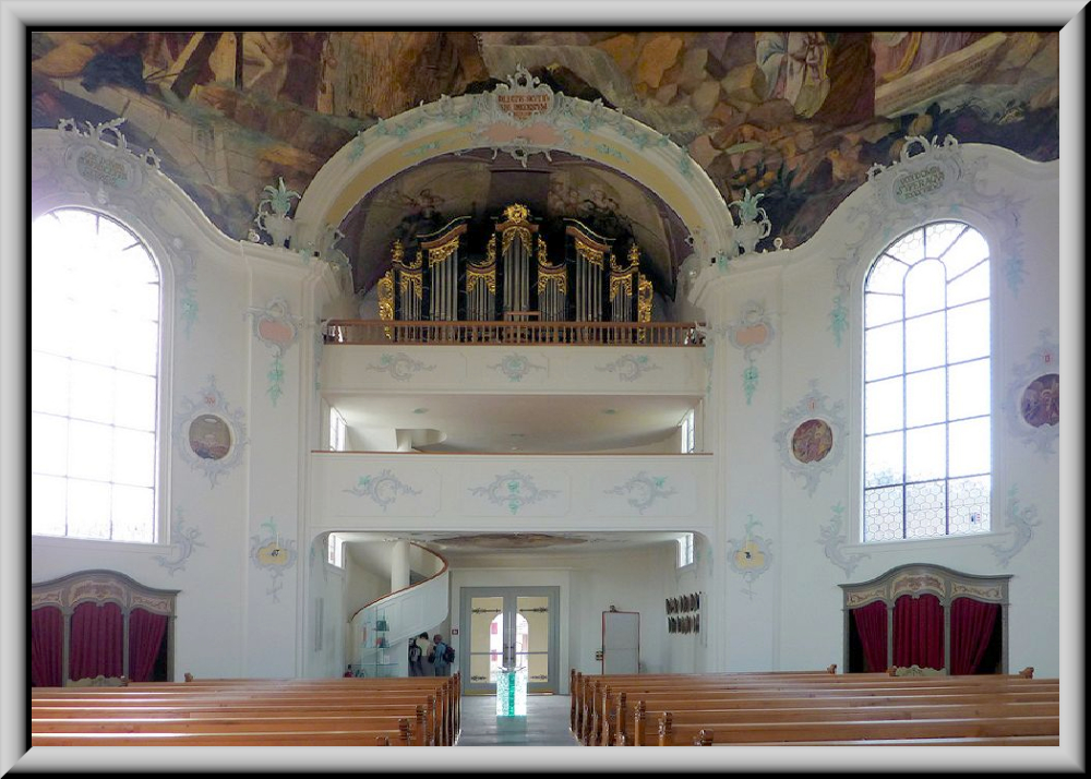 Orgel mit wiederum 14 Registern. Das neobarock verzierte Gehäuse