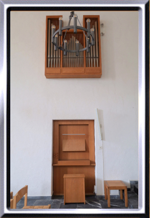 auf einem Manual. Die Orgel und der Spieltisch stehen in zwei in die