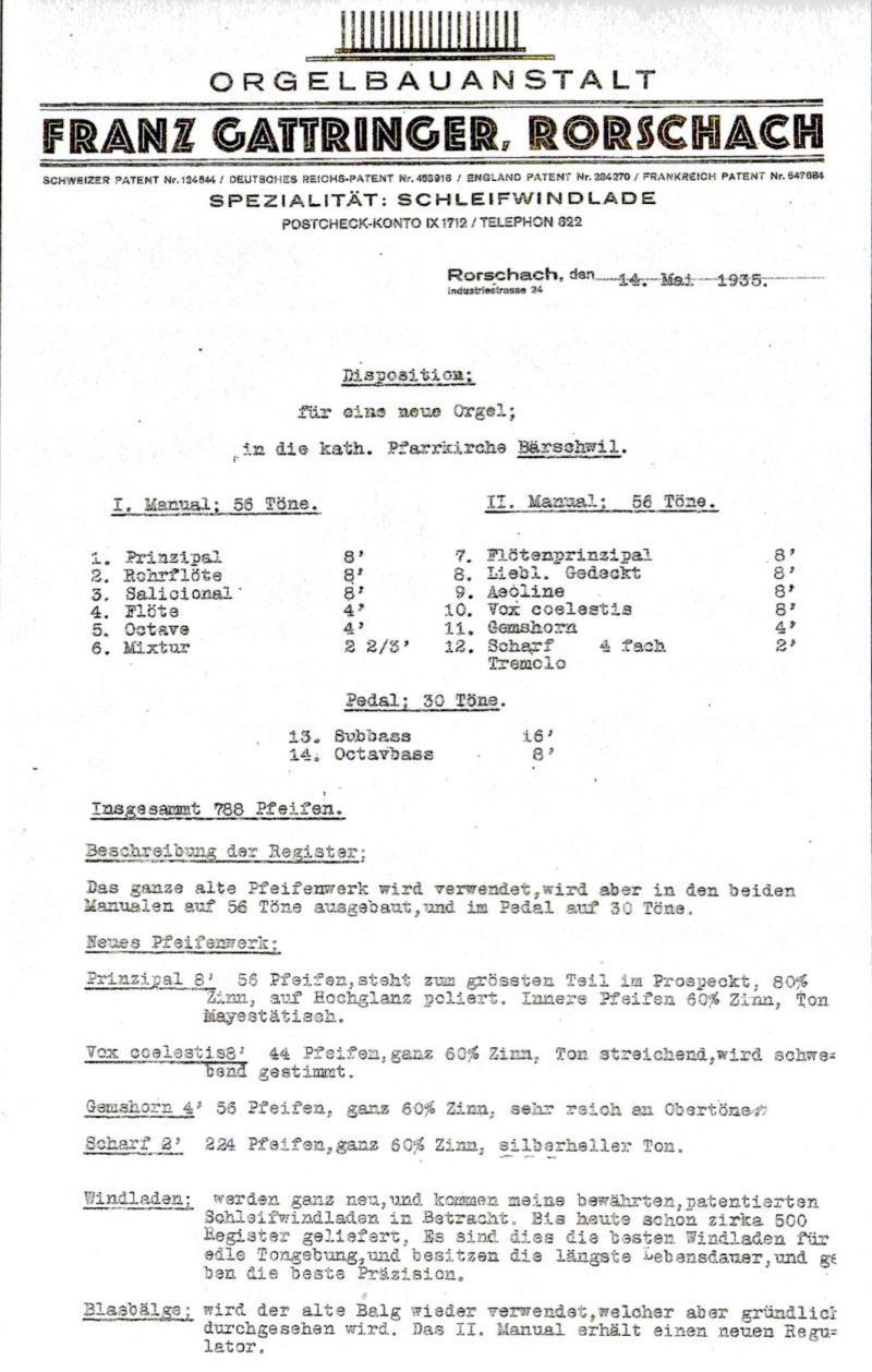 2 Manualen und Pedal. Gemäss Vertrag Gattringer wurden das