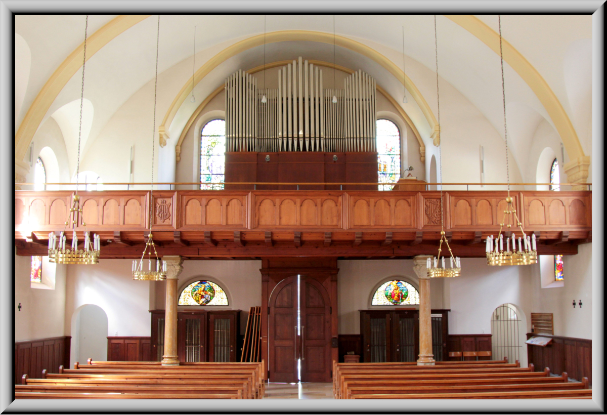 abgewinkelt rechts neben der Orgel.