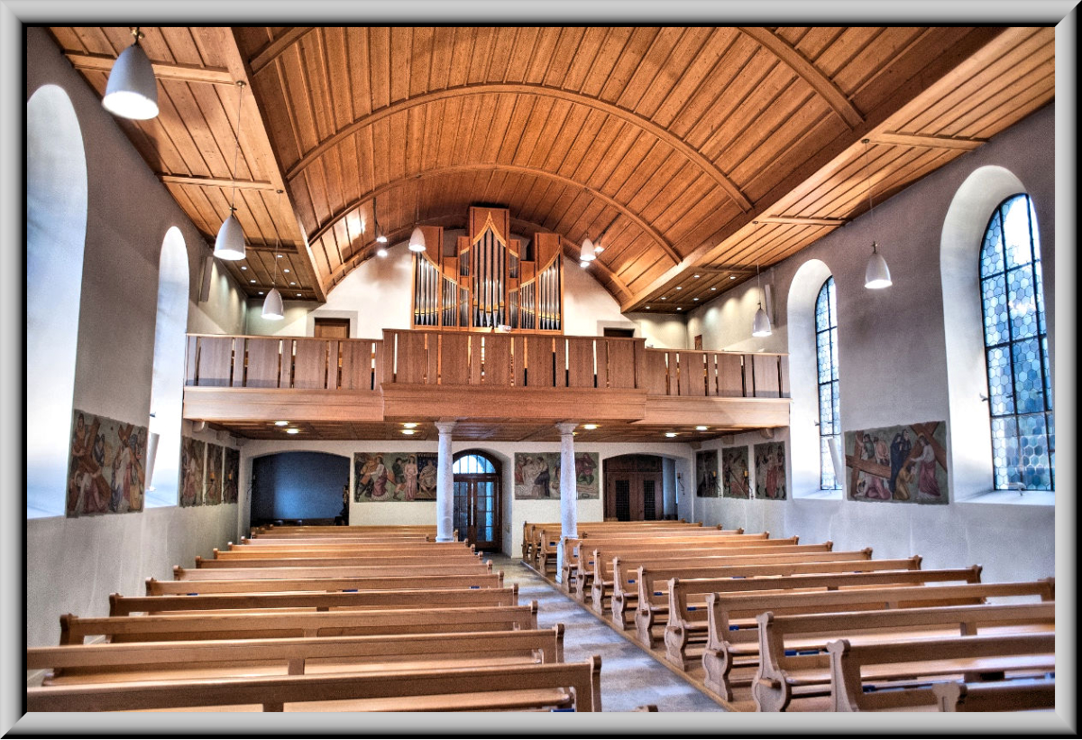 Nische in der Rückwand der Kirche eingelassen. Die Jalousien schliessen