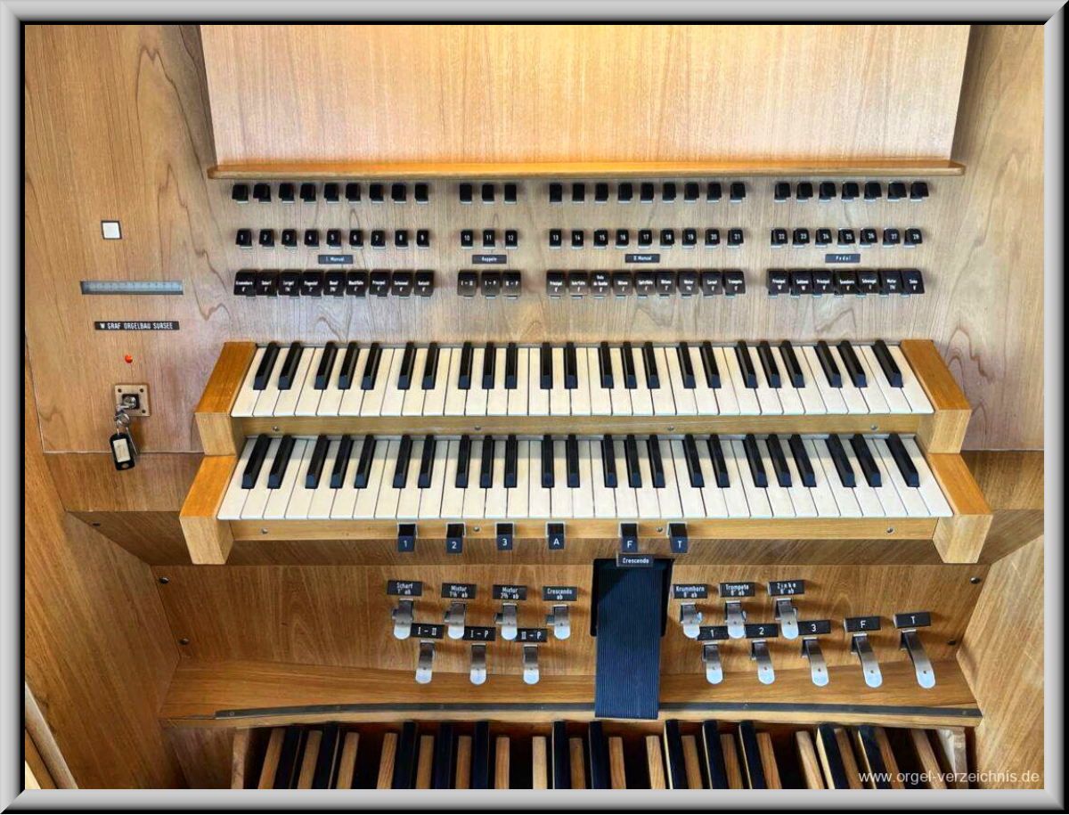 Sursee, eine Orgel mit 25 Registern auf 2 Manualen und Pedal. Der