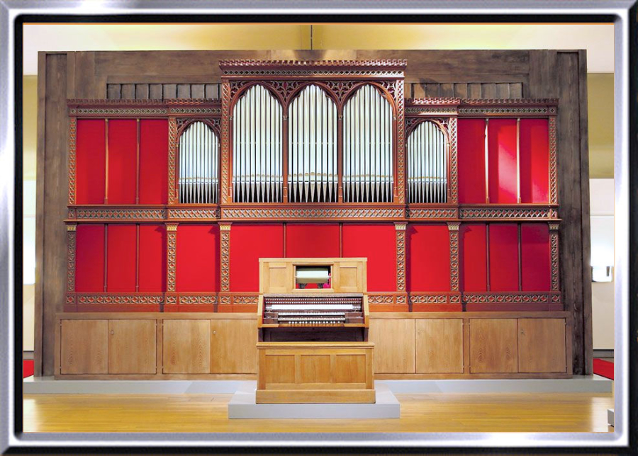 durch welche die Museumsbesucher das Innere der Orgel betrachten können.