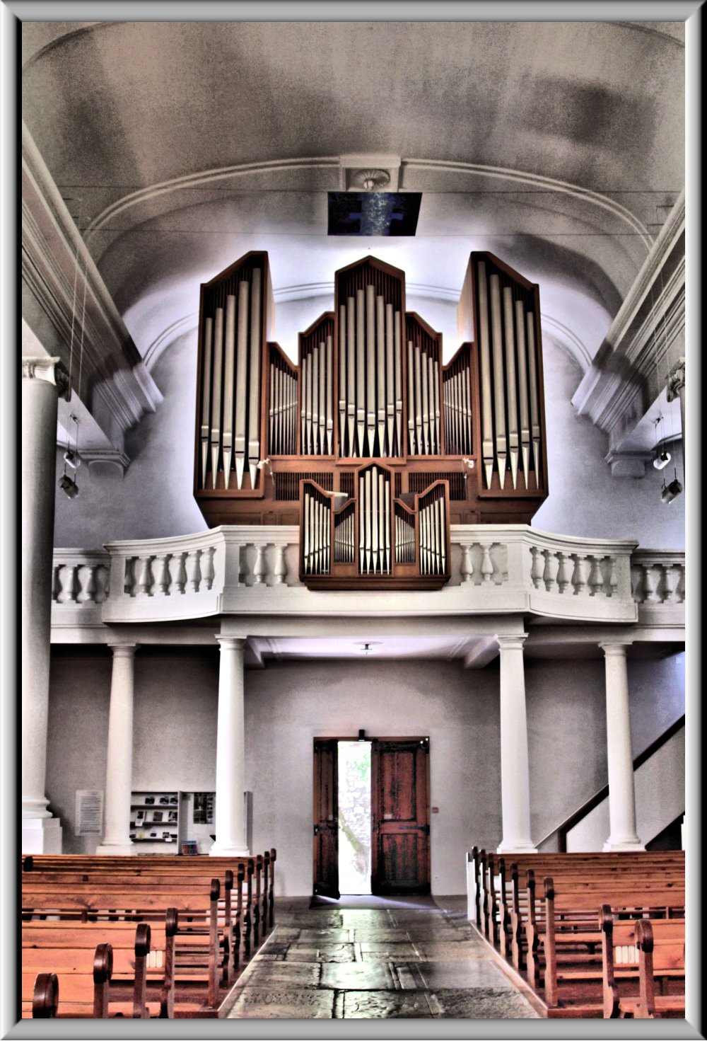 Meter weiter vorn auf der Empore wieder aufgebaut, damit das Westfenster
