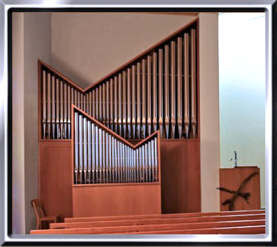 11 klingenden Registern auf 2 Manualen und Pedal.