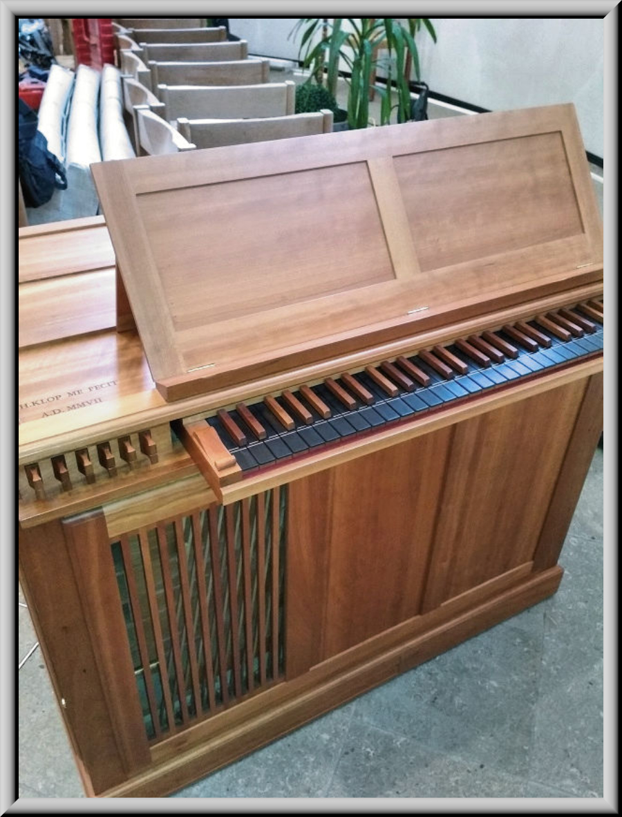 Eine Truhenorgel mit 6 Registern (>Disposition), gebaut von Henk Klop,