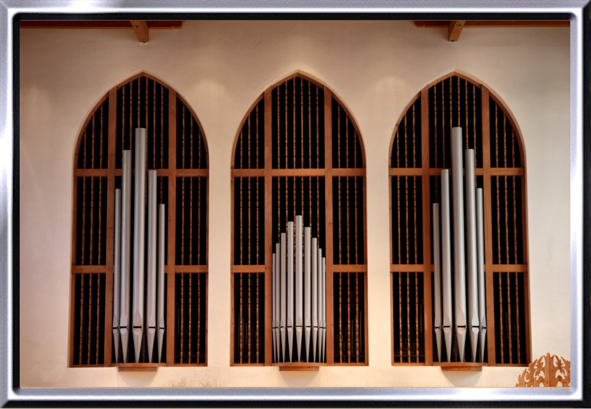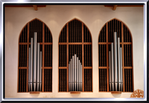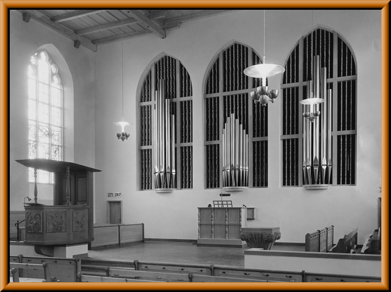 Orgel frei aufgestellt war, durch eine Mauer mit drei Spitzbogenöffnungen