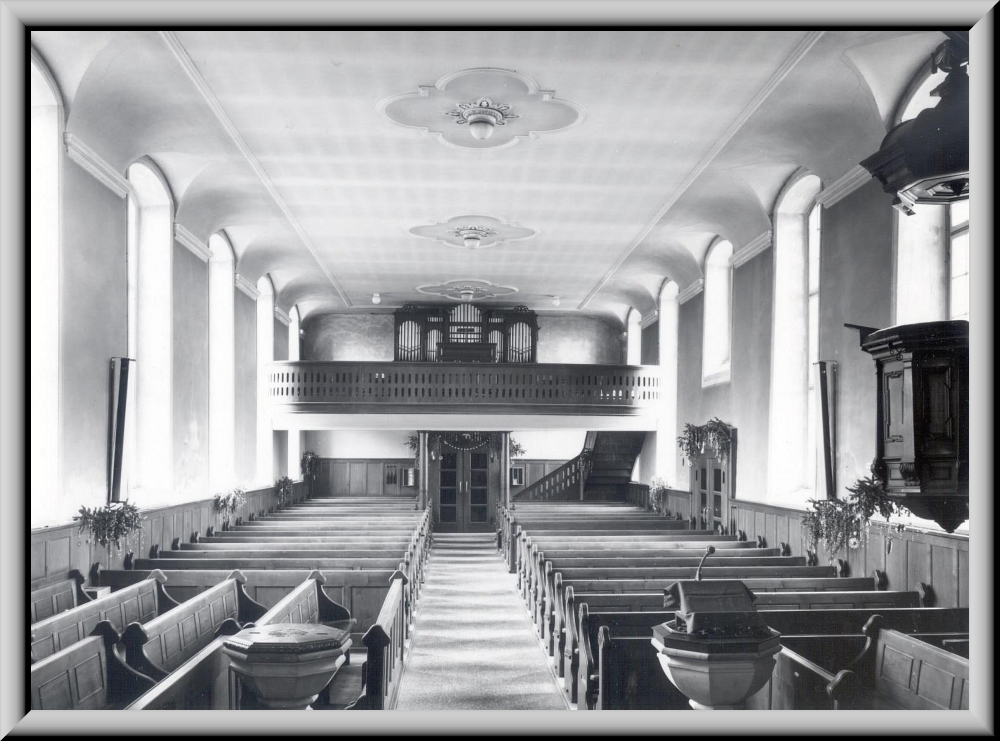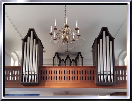 zwei in die Emporenbrüstung eingebauten Türmen.