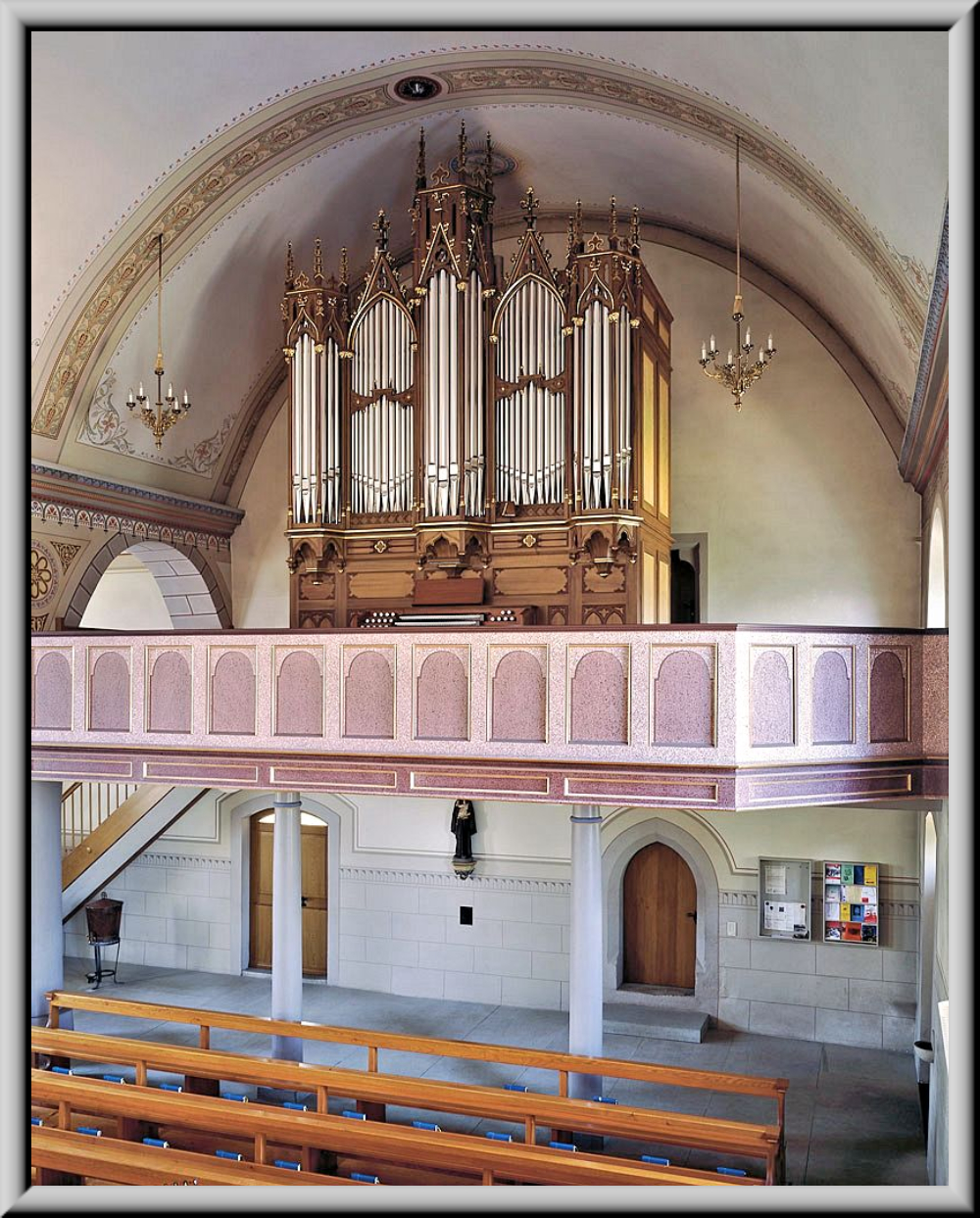 20 Registern auf 2 Manualen und Pedal. Kuhn verwendet dabei den